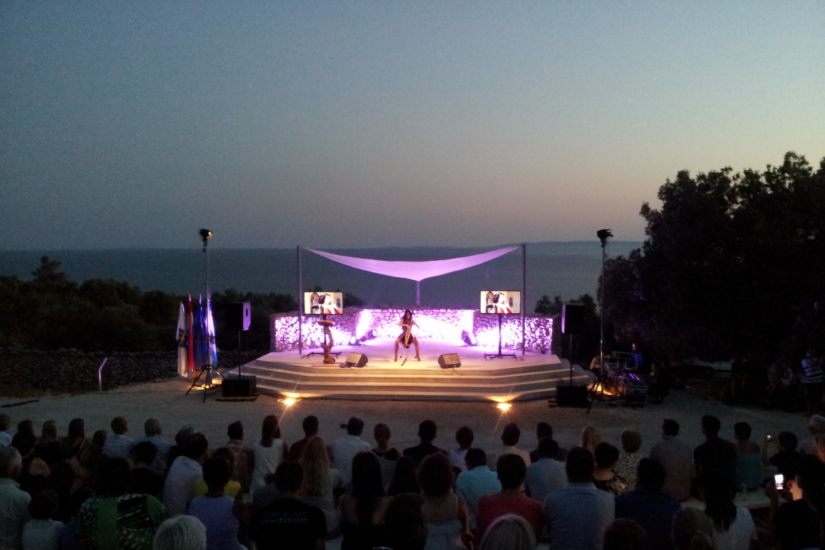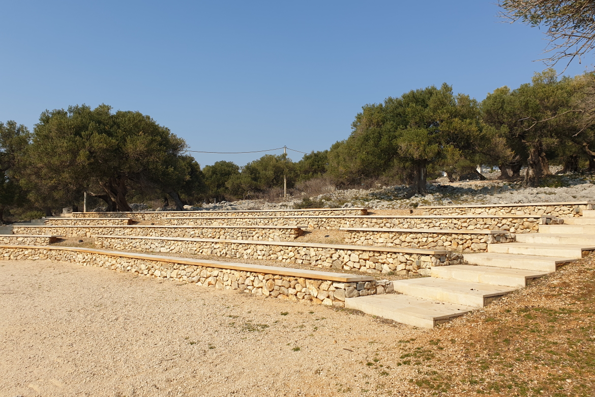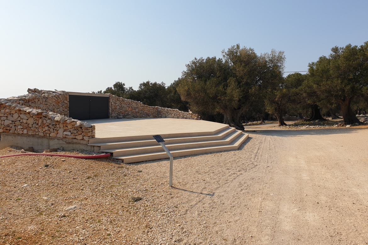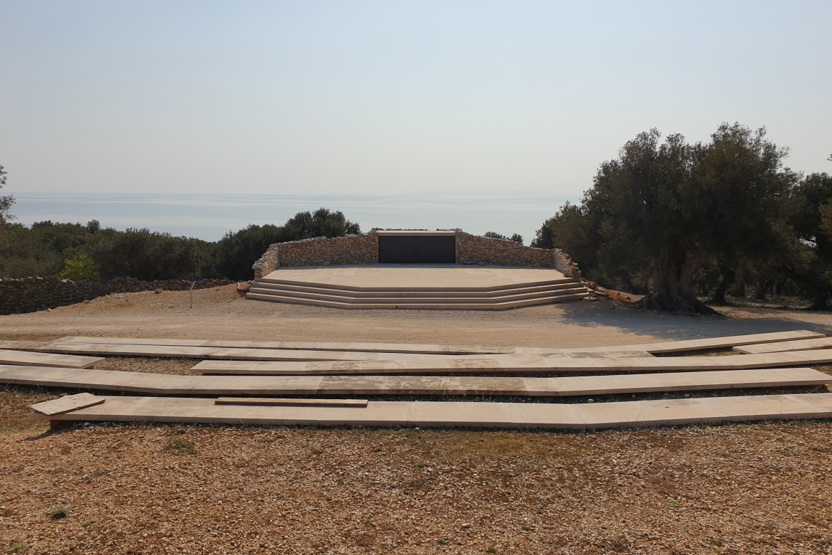 Pozornica i tribine koje su ugostile mnoge kazališne i koncertne događaje pod zvjezdanim, ljetnim nebom u spokojnom, prirodnom ambijentu okružen višestoljetnim stablima maslina.