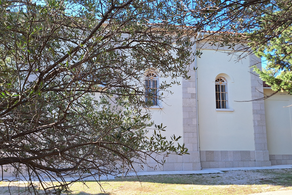 Posebno je draga činjenica da je Dominik Kunkera (arhitekt) pri uređenju okoliša vodio računa o još jednoj posebnosti Luna. Naime u Lunu crkve nisu okružene betonom, pločnicima i raznim urbanim uresima (što je uglavnom drugdje pravilo), već je i ova “najnovija” crkva smještena u svoj prirodni okoliš, u zagrljaj maslina, smokve i suhozida.