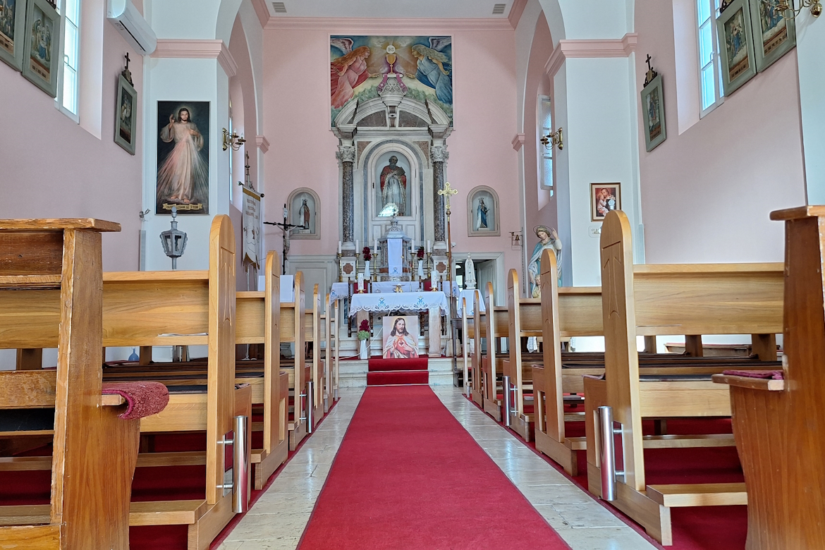 Crkva je jednobrodna, brod je dugačak 11,80 m širok 6,80 m. Prezbiterij je 4,10 m dugačak i 5,14 m širok, a sakristija ima 8 m2.