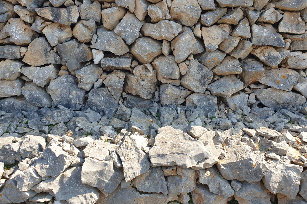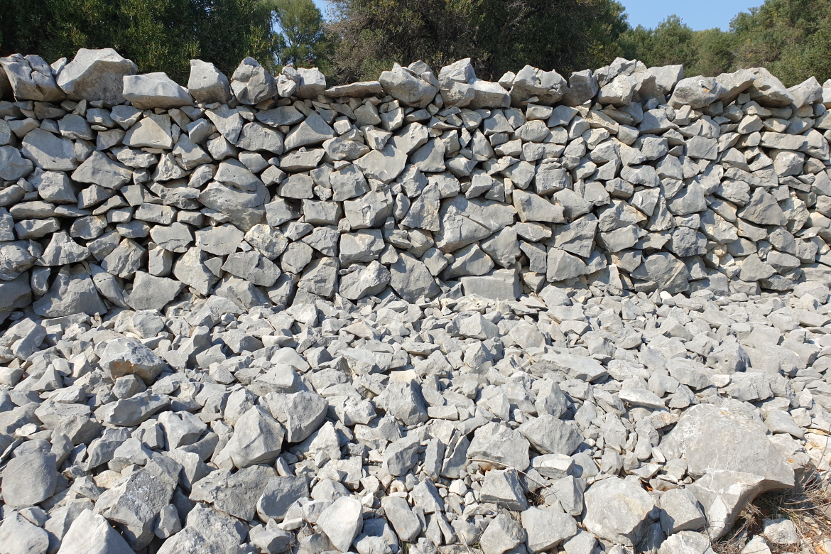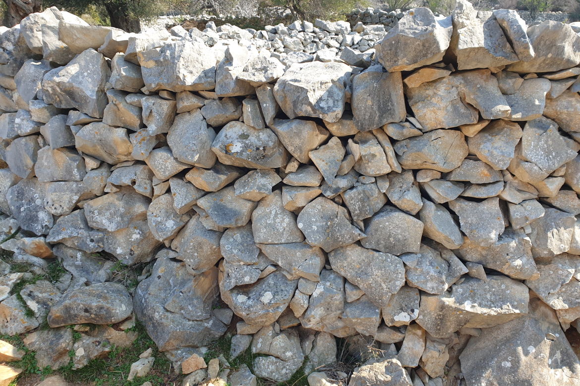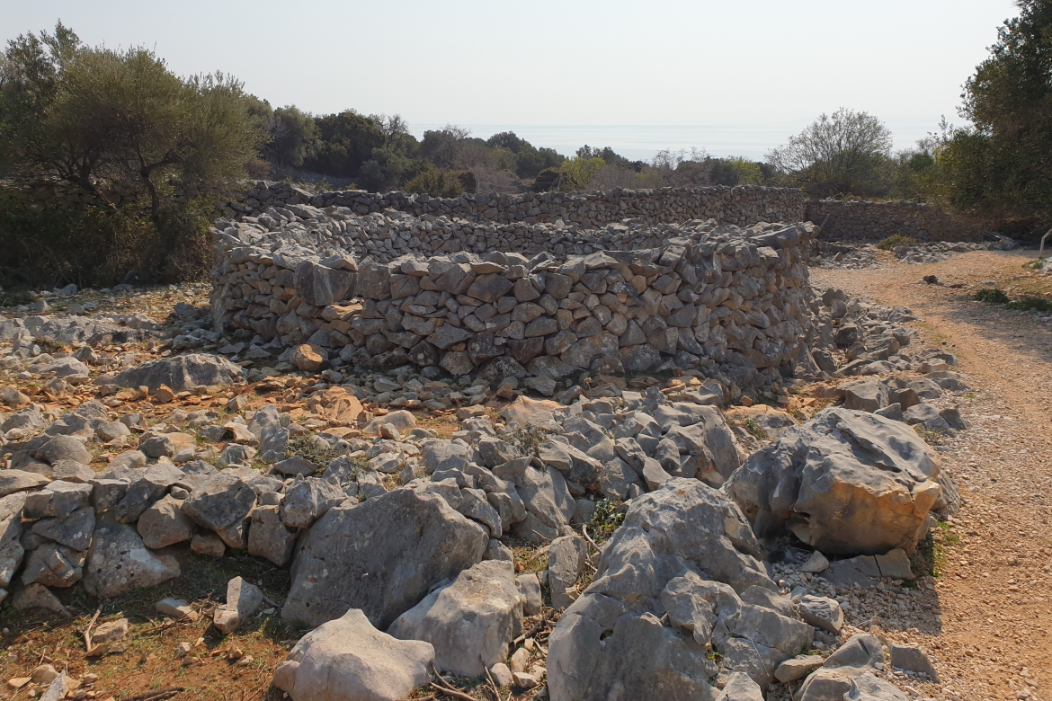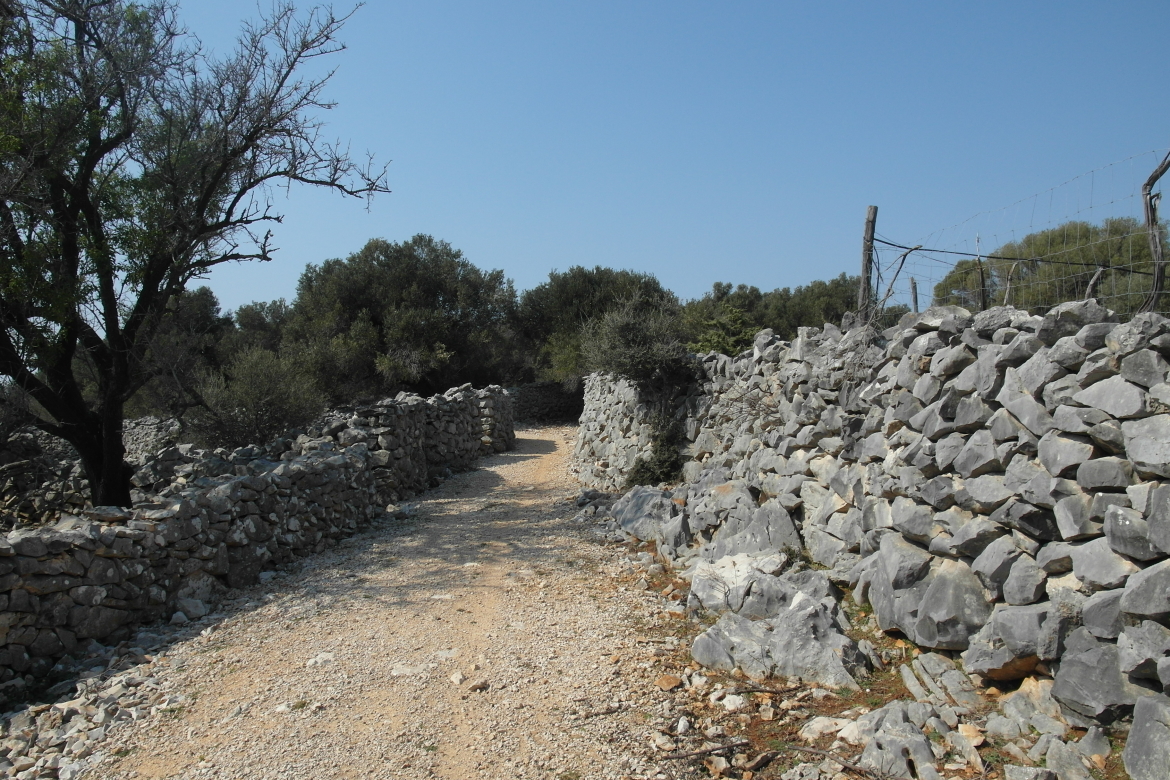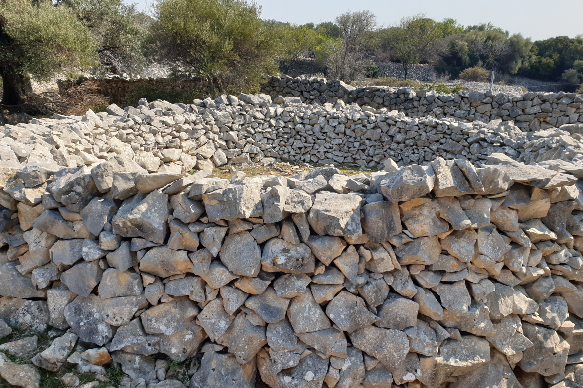 Suhozidi su nastajali kao posljedica krčenja radi dobivanja obradive površine. Rezultat krčenja je bila jako velika količina kamena koja se zbrinjavala na način da se ogradi krčevina i tako je dobiveno najmarkantnije ljudskom rukom izgrađeno svojstvo ovog krajolika: sveprisutno osobito visoko (oko 1,80m) i široko (na pojedinim mjestima i preko 2m) kvalitetno građeno suhozidno omeđenje posjeda i putova. Na vrhu suhozida se postavljao kameni vijenac tzv. ozuba, koja je onemogućavala ovci preskakanje suhozida i uništavanje ljetine.